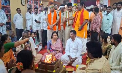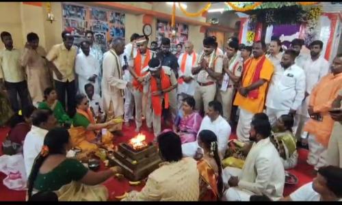 Studio18 News - TELANGANA / HYDERABAD : హైదరాబాద్ పాతబస్తీ ఉప్పర్ గూడ రామాలయంలో శ్రీ రామ భక్త సమాజం ఆధ్వర్యంలో శ్రీ సీతారాముల కల్యాణ మహోత్సవం వైభవంగా నిర్వహించారు. ఈ సందర్భంగా చార్మినార్ జోన్ డీసీపీ కిరణ్ కుమార్ ఖేరా, మదన్నపేట సీఐ ఆంజనేయులు మంగళ వాయిద్యాల మధ్య ఊరేగింపుగా విచ్చేసి స్వామివారికి పట్టువస్త్రాలు, ముత్యాల తలంబ్రాలు సమర్పించి ప్రత్యేక పూజలు నిర్వహించారు. కార్యక్రమంలో భాగ్యనగర్ జిల్లా బీజేపీ అధ్యక్షుడు నిరంజన్ యాదవ్, రాంపాల్ యాదవ్, పి.శ్రీనివాస్, ధనరాజ్, ప్రమోద్ ముదిరాజ్, పెద్ది యాదవ్, రాహుల్ కిషోర్ యాదవ్ పాల్గొన్నారు. వేదపండితులు, అర్చకులు, పూజారుల వేద మంత్రోచ్ఛారణల మధ్య కల్యాణం ఘనంగా జరిగింది. భక్తులు పెద్ద సంఖ్యలో చేరి భక్తిశ్రద్ధలతో ఈ వేడుకలో పాల్గొన్నారు.
